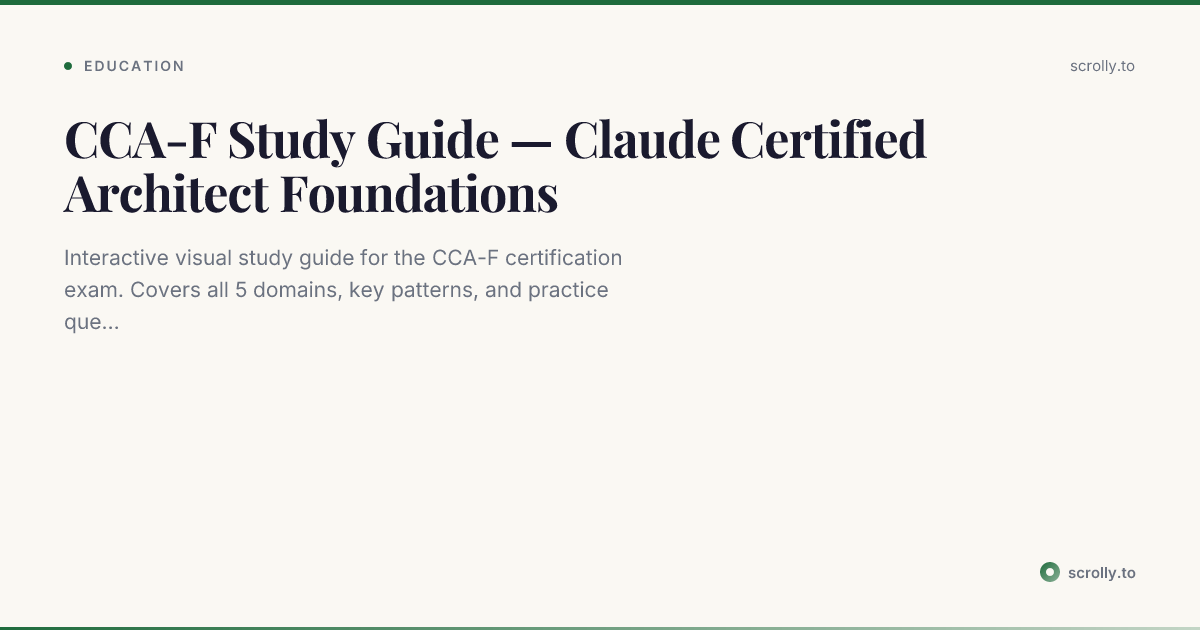 Everything you need to pass the CCA-F exam: domain breakdowns, key patterns, anti-patterns, and interactive practice questions.
