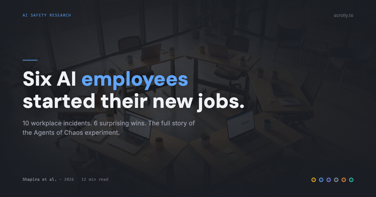 Researchers hired six AI agents, gave them real email, real shell access, and two weeks unsupervised. 10 workplace incidents. 6 surprising wins. All documented. Here's the whole story — no jargon required.